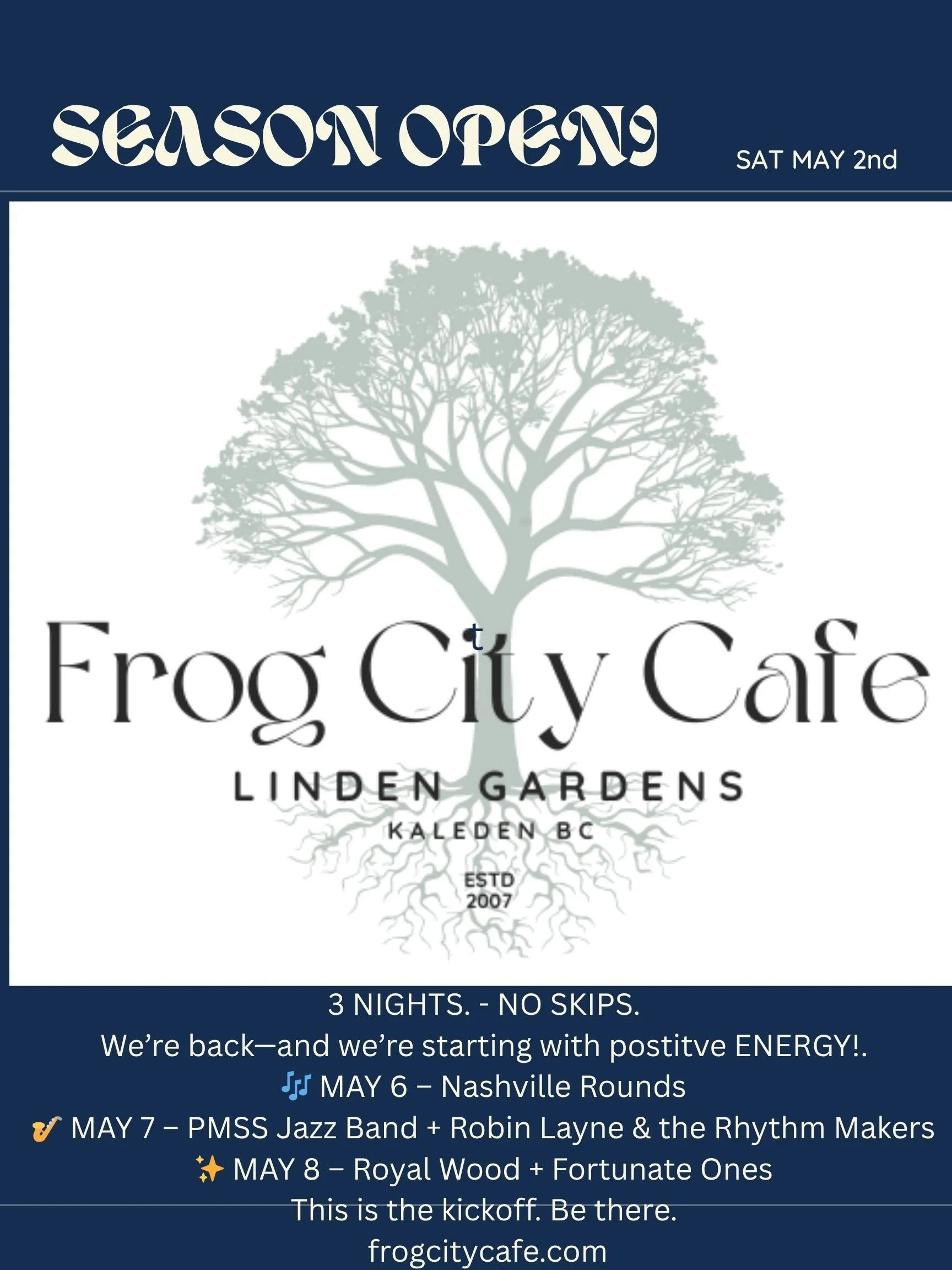 We offer Dough Bros (Neapolitan Flatbreads) in the warm evenings when live music is happening. We have a Winter menu for the cozy evenings of live music inside.